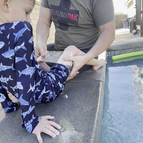 Battle Wrap® is a high-performance compression wrap for use as an adjunct in hemorrhage control. It is transparent to allow full visualization and rapid reassessment of underlying wounds. Battle Wrap is strong and exceeds the holding power of traditional compression wraps and does not shred or delaminate in the most challenging environments. The medical grade adhesive is self –adhering, non-irritating and leaves no residue on the skin.